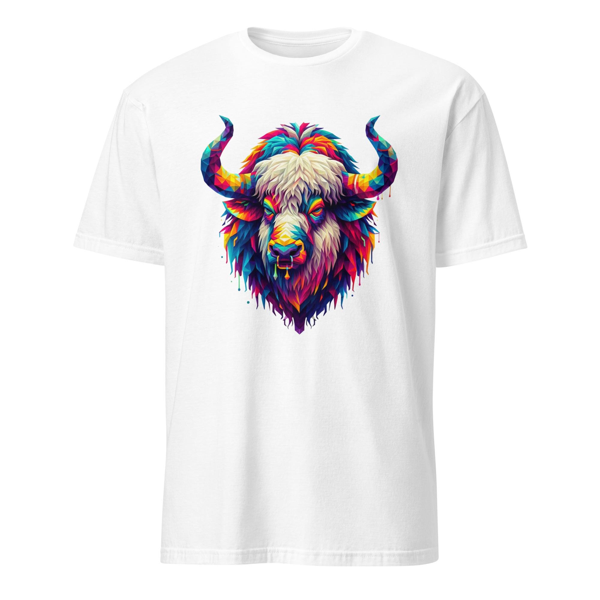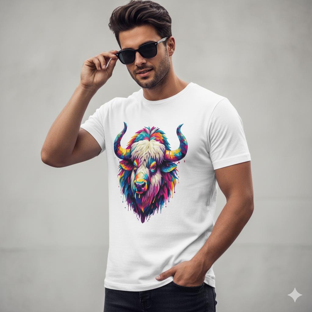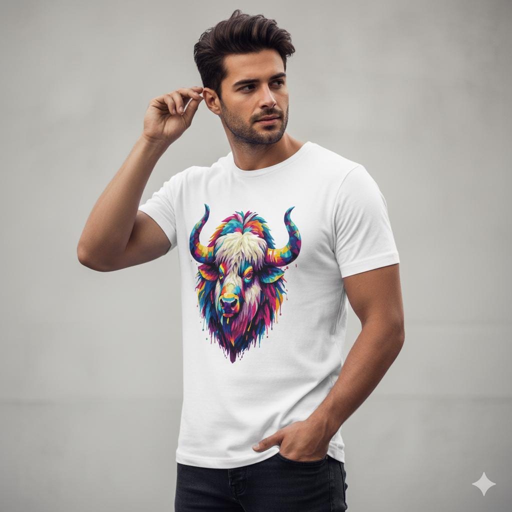 Make a bold statement with our unique Colorful Abstract Bull T-shirt. This tee features a stunning, abstract bull head design rendered in a kaleidoscope of vibrant colors, making it a true piece of wearable art. It’s the perfect shirt for anyone who loves powerful, artistic designs and wants to stand out from the crowd.
