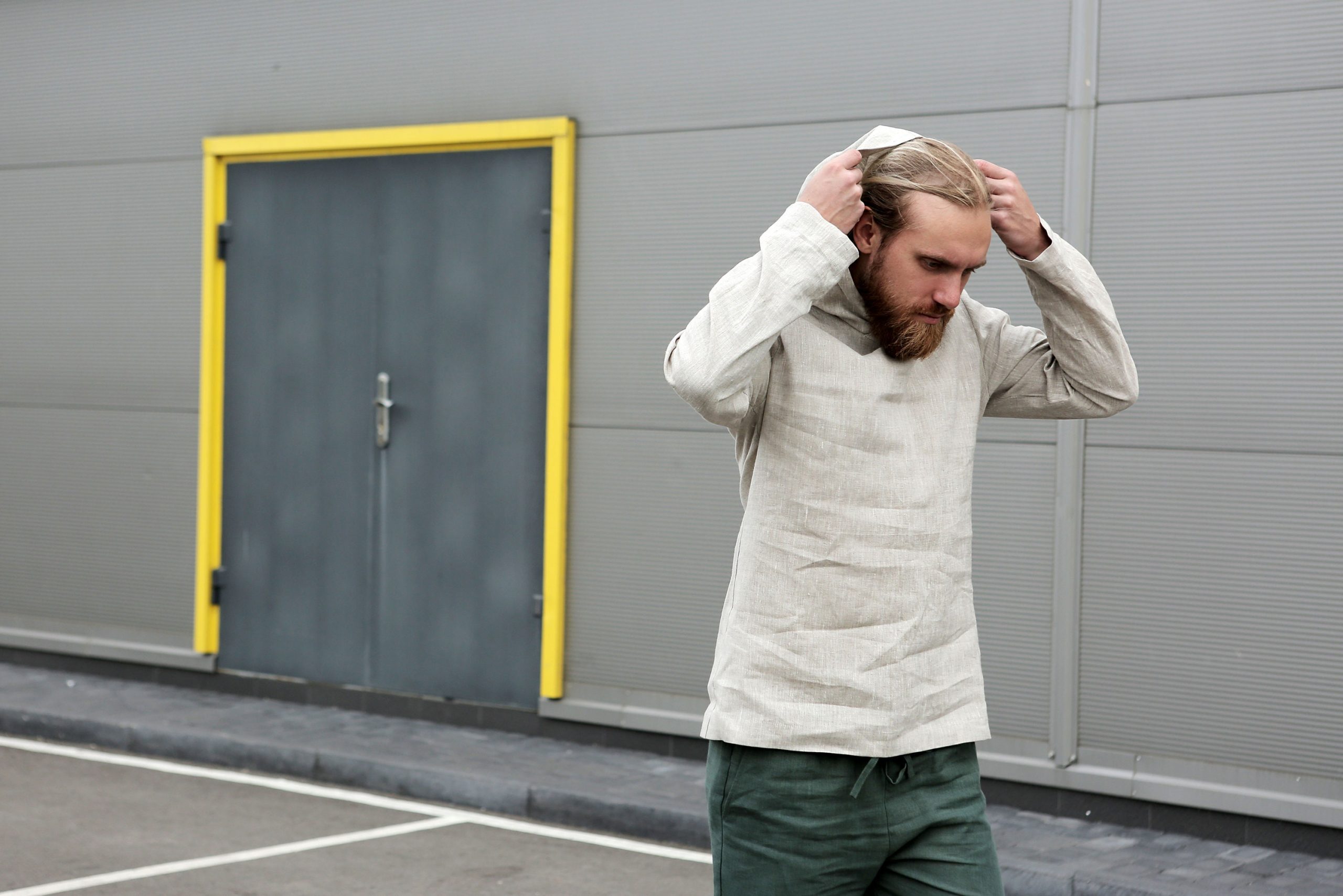Natural color linen men’s hoodie.
